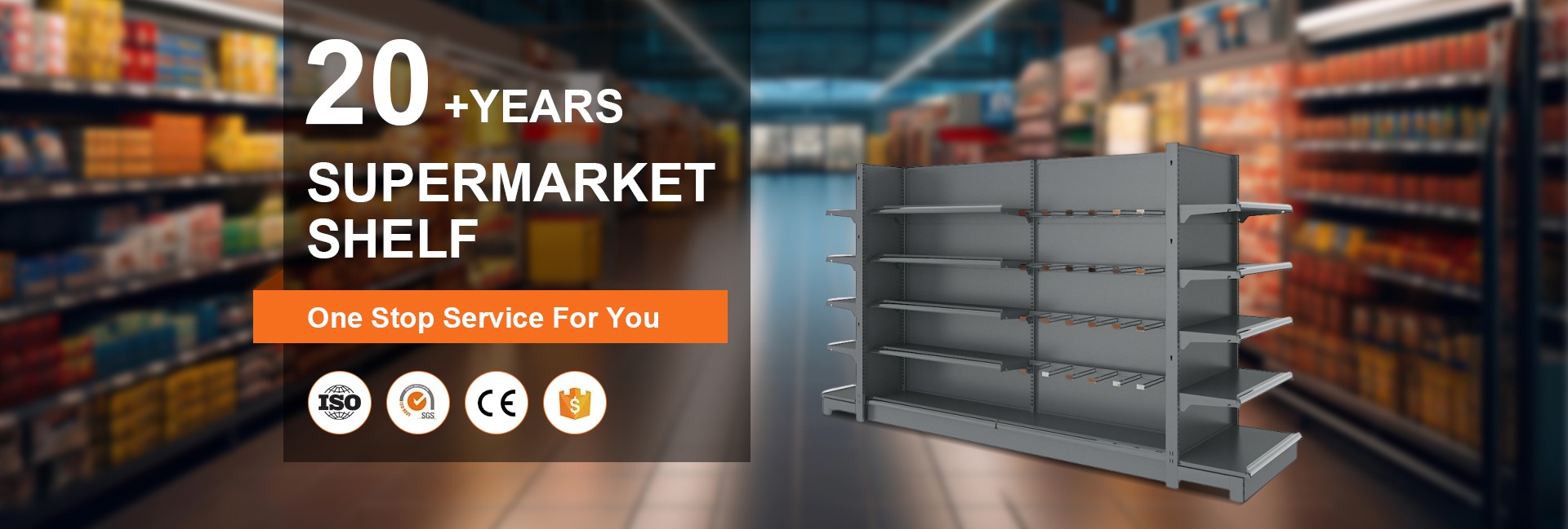 Étagère double face à prix d'usine, présentoir de super magasin, étagère pour les supermarchés, étagère à gondole noire